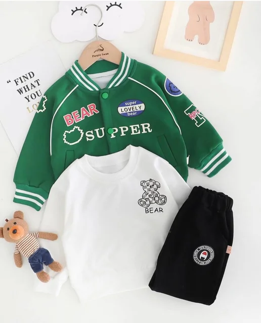 کیوت لند✨🍭🥰 🎀 نام محصول:سه تکه وارداتی بیسبالی 📝 توضیحات محصول: 🎨 رنگبندی:سبز🟢⚫️ 📏 سایزبندی:یک سال تا پنج سال 🧵 جنس:نخ پنبه دورس نرم و لطیف