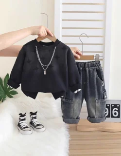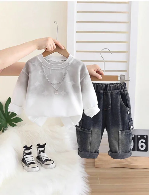 کیوت لند🥰🥹 نام محصول:ست سه تیکه پسرانه😍 توضیحات:اورجینال و بسیار باکیفیت شلوار+بلوز+زنجیر تزئینی سایزبندی:۹ماه تا ۵سال جنس:شلوار جین+بلوز دورس نخ پنبه رنگبندی:سفید،نسکافه ای،سیاه قیمت:۱/۹۸۰/۰۰۰تومان